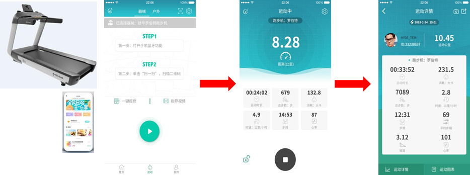 跑步機可結合智能盒子,快速實現智能化體驗。微信掃碼快速登錄。選擇場景同步數據,屏幕數據不跑步機數據實時傳輸。