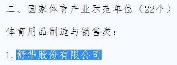 2017年1月12日,國家體育總局下發《國家體育總局體育經濟司關于2016年國家體育產業基地評選結果公示的通知》,這一《通知》向社會各屆公布了2016年國家體育產業基地評選結果,根據《國家體育產業基地管理辦法(試行)》和《國家體育總局關于進一步加強國家體育產業基地建設工作的通知》,經體育總局批準認定,并公示無異議,2016年國家體育產業基地評審結果正式確定。國家體育總局已于2月6日下達批復,正式命名新一批11個國家體育產業示范基地,正式認定新一批22個國家體育產業示范單位和12個國家體育產業示范項目。舒華股份有限公司成為“國家體育產業示范單位”!
