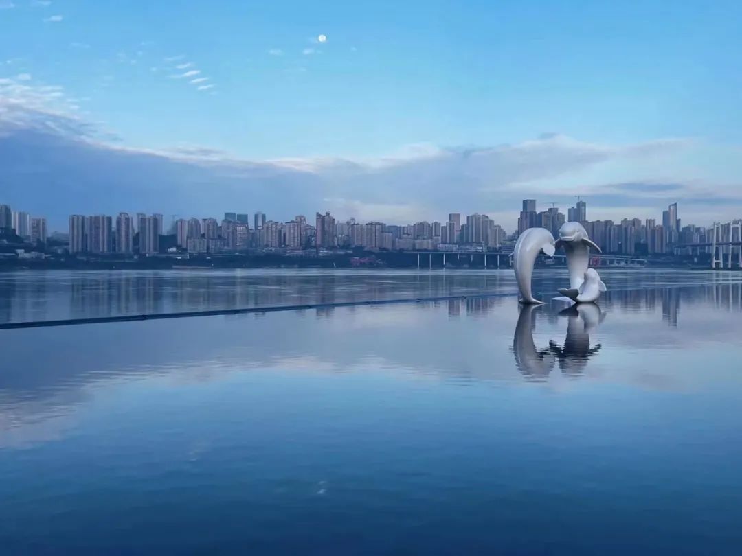 有人叫它重慶的小茶卡鹽湖,也有人說它是主城最美的天空之鏡。無邊水池里鯨魚出海的雕塑跟身后山城的美景呼應(yīng),讓沒有海卻對海有著瘋狂熱愛的重慶人民,著實享受了一次海邊的待遇。