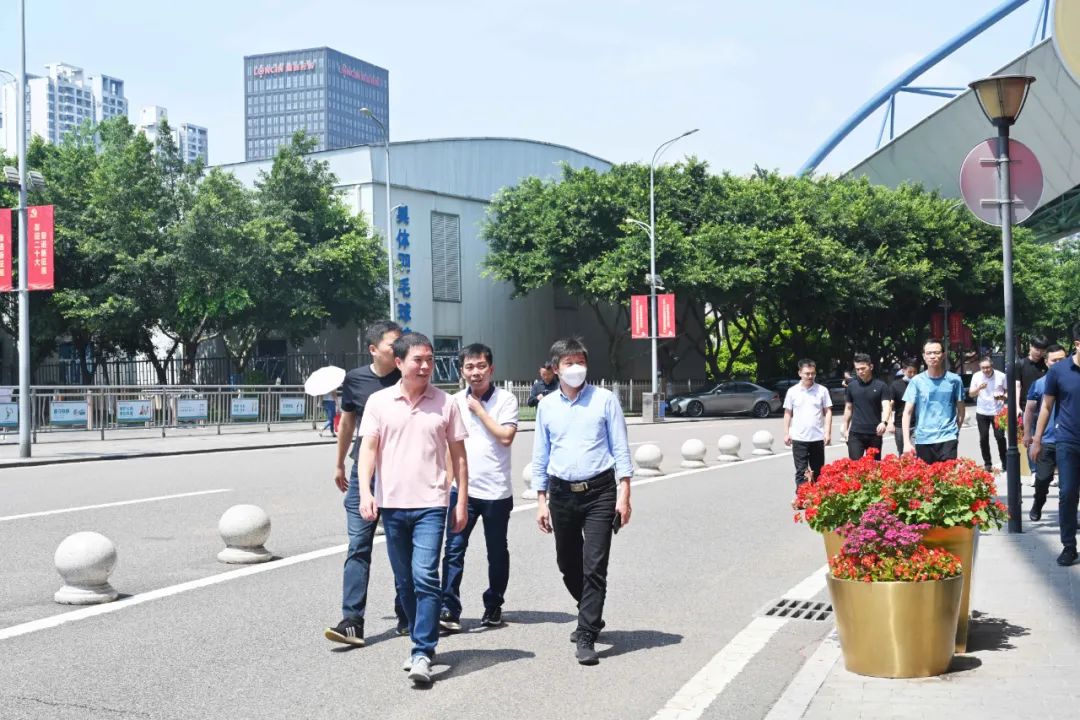 2022年 5月23日,舒華體育董事長兼總裁張維建,副總裁李曉峰及營銷事業(yè)中心總經(jīng)理連新安等一行蒞臨重慶奧體中心舒華旗艦店視察指導。重慶友杰體育總經(jīng)理吳成恩攜公司高管人員熱情接待張總一行。