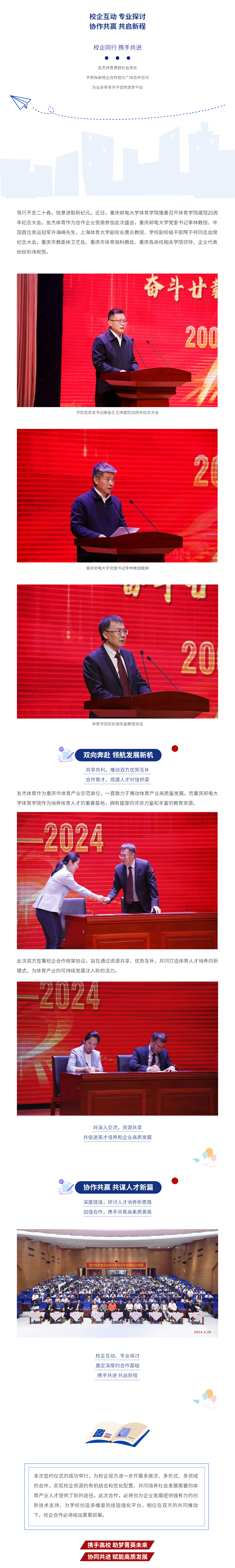 友杰體育勇擔社會責任,不斷探索校企合作雙方廣闊合作空間,為眾多莘莘學子提供逐夢平臺,為高校、企業發展聚力匯智。